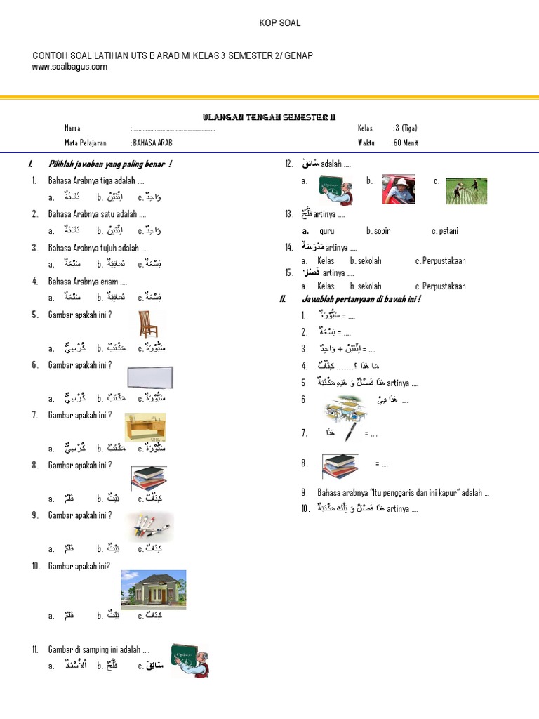 Soal Bahasa Arab Kelas 3 Semester 2 2020 / Download Soal Soal Uts Bahasa Arab Sd Terbaru 2014 Lengkap Sekolah Dasar Islam - 75 info contoh soal bahasa arab kelas 2 semester 1 pdf doc download zip soal pts bahasa arab kelas 10 semester genap warta madrasah.. We did not find results for: Soal uts bahasa arab kelas 1 semester 2 bag 1. Soal uas b arab kls 2 semester 1 ganjil pdf z0xj87onroln. Latihan bahasa arab kelas 2 semester 1. Soal bahasa indonesia kelas 3.